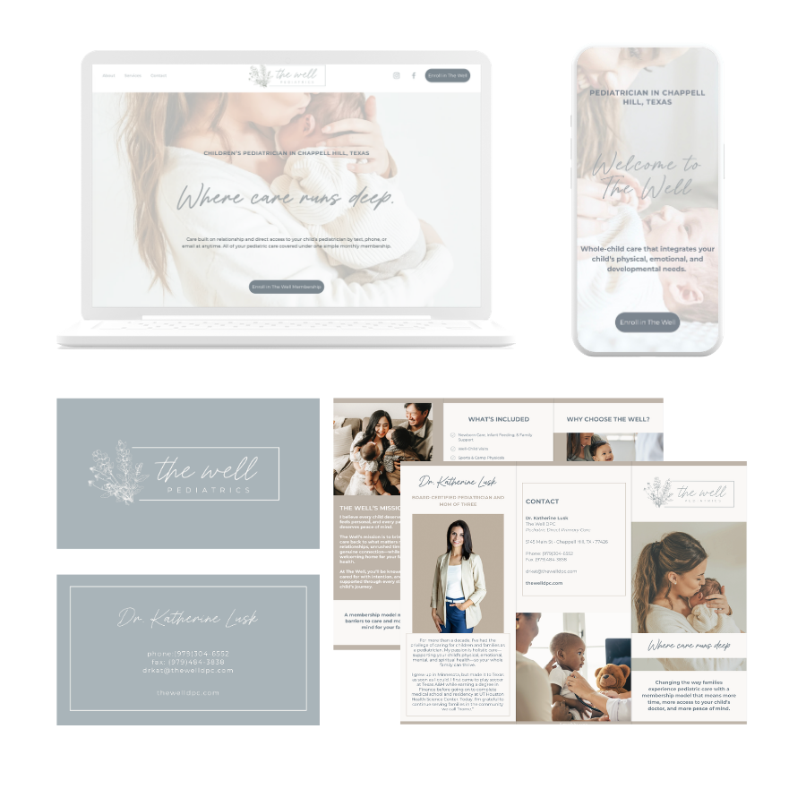 This is ideal for private practice owners who want everything they need to curate a strong online presence. Brand identity, website, print materials, and social media templates that are all cohesive and elevate your brand.
